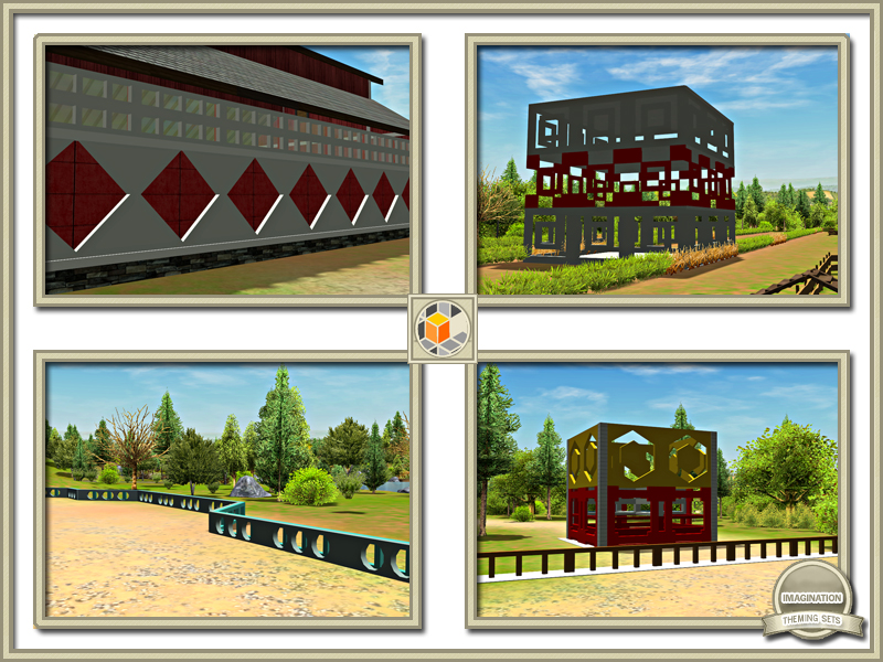 Walls, walls, and more walls for your enjoyment. There’s 25 different styles to choose from and are completely recolorable. Very art deco-esque. Another updated set from the Imagination folks. Updated textures and alignment fixes in this update.